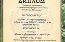 Поздравляем педагога-психолога Сафину Эльмиру Николаевну с победой в номинации «Самая информативная страничка» в городском смотре-конкурсе «Лучшая страничка педагога-психолога на сайте ДОУ».