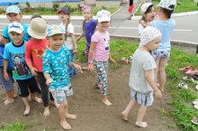 18 июля прошел день песочных построек «В мире песочных фантазий». Ребята с удовольствием возводили постройки, лепили песочные фигуры для их украшения. Дети строили, радовались полученным результатам. А также дети принимают ежедневные закаливающие процедуры на специально отведенном месте.