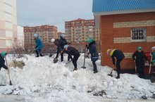 В детском саду в рамках санитарно - экологического двухмесячника прошел чистый четверг. Сотрудники детского сада раскидали снег на территории детского сада.