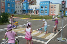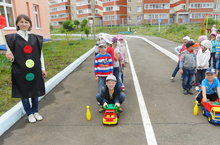 В целях актуализации ЗУН по безопасному поведению на улицах и дорогах (права и обязанности пешехода, велосипедиста, водителя транспортного средства; дорога и ее элементы) 9.07.2015 года в ДОУ№35 было проведено спортивное развлечение «Дорожная азбука». Ребята продемонстрировали не только уровень развития быстроты, силы, ловкости, но и уровень знаний ПДД. Воспитанники подготовили стихи, песни, а гость развлечения - регулировщик Знайка – приготовил в подарок загадки и веселые игры. В играх принимали участие группы «пешеходов», «велосипедистов». Дети отвечали на вопросы, выполняли игровые дорожные ситуации. Велогонки стали закрытием мероприятия.