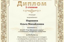 Поздравляем Паршину Ольгу Михайловну с победой (2 место) во Всероссийском творческом дистанционном конкурсе с международным участием «Здоровьесберегающие технологии в практике педагога».