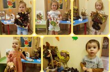 В первой младшей группе "Зайчики" прошла выставка поделок из природного материала «Осенние фантазии». Родители совместно с детьми смастерили замечательные поделки: забавных животных, осенние композиции, которые можно назвать настоящими произведениями искусства. В каждой работе прослеживается творческая индивидуальность и фантазия каждой семьи.
