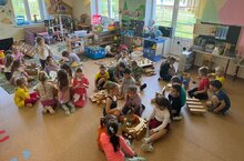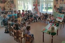 В преддверии дня Республики Татарстан воспитанники средней группы "Крепыш" и малыши второй младшей группы "Капельки" провели тематический день "Мой любимый Татарстан". Воспитанники с интересом участвовали в беседе о государственных символах Р. Т., родном городе Альметьевск и его достопримечательностях, нарисовали флаг республики разными способами;поиграли в игру" Знаю много городов".