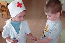 Ребята второй младшей группы "Кроха" знакомились с сюжетно-ролевой игрой "Больница". Тем самым расширяли представления о труде врача, формировали умения применять в игре полученные ранее знания об окружающей жизни и принимали на себя игровую роль (помощник доктора, пациент).