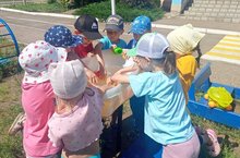 В акции под названием "Оранжевое лето", проводимой в рамках международной программы "Эко/Школа Зеленый Флаг" принимают участие и ребята групп " Ладушки" и "Котята".Детям нравится создавать красоту вокруг себя.