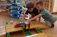 Дети старшей группы "Фантазеры" построили целый комплекс мостов из деталей строительно набора "Бабашки" и проигрывали дорожные ситуации, закрепляли правила безопасности. В течение дня ребята еще осваивали правила новой игры, а также смогли насладиться вкусом первых ароматных ягод клубники, которые дети вырастили дома со своими родителями. Воспитатель Фролова А.Н.