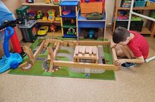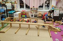 У ребят группы "Весёлые ребята"ни один день не обходится без деревянного конструктора" Бабашки".С большим интересом они играют им, получаются у них замечательные постройки: многоуровневая парковка, ферма для животных, зоопарк и так далее.