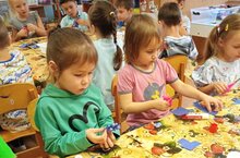 В преддверии празднования дня маа дети старшей группы "Фантазеры" пригласили малышей из группы "Котята" на совместное изготовление подарочных сердечек для мам. Вместе они украсили небольшие открыточки, немного поиграли вместе и отправились все вместе в гости к малышам, где старшие мальчики и девочки рассказали стихи о маме и порадовали их своим выразительным исполнением добрых слов о маме