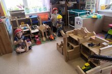Любимое место игр мальчиков группы "Солнышко".Чего только они не строят из бабашек: ферму, гараж, подземную парковку и т.д. Конструктор помогает воплощать идеи ребят. Сооружения получаются большими, интересными. Игра сплачивает детей, развивает мышление, фантазию.