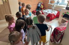 С воспитанниками первой младшей группы «Цыплята»была проведена экскурсия по детскому саду. Для того, чтобы сформировать знания о своем детском саде, умение ориентироваться в коридоре первого и второго этажей дошкольного учреждения.