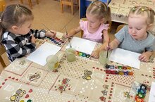 Ребята старшей группы "Фантазеры" в своей творческой мастерской нарисовали ежиков, используя при этом осенние листья. Дети с большим интересом раскрашивали листочки, а потом делали отпечатки на свою картинку, опираясь на картинку-поделку. Работы получились яркими и забавными