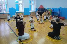Сегодня в средней группе "Солнышко" прошла утренняя гимнастика с родителями под руководством Марины Васильевны.