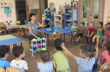 Веселее только скачет...так началось занятие в группе "Зайчики". Ребята отгадывали загадки, играли в подвижные игры, называли любимые цвета, а самым приятным моментом стала аппликация. С работой справились...расположили мячи на листе бумаги. Детям занятие понравилось.