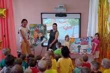 В процессе работы с детьми была проведена тематическая беседа "Правила безопасного поведения на дорогах", рассматривали плакаты, закрепляли сигналы светофора . Вместе с детьми выделили, что светофор – главный помощник на дороге, и что он очень красивый, потому что разноцветный. Но стоит он не для красоты, а для безопасного движения по дороге. Для закрепления этих знаний, поиграли в игру «Светофор». Познакомились с новой музыкальной игрой "Паровоз", " Самолёт". Рассматривали плакаты "Виды транспорта". Смотрели поучительные мультфильмы "Как правильно переходить дорогу", мультфильмы Аркадий Паровозов. А ребята подготовительной группы делились опытом с малышами.