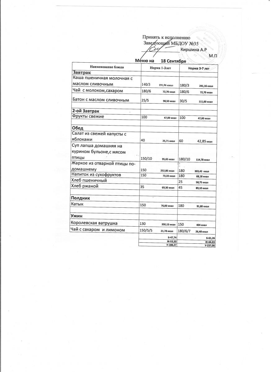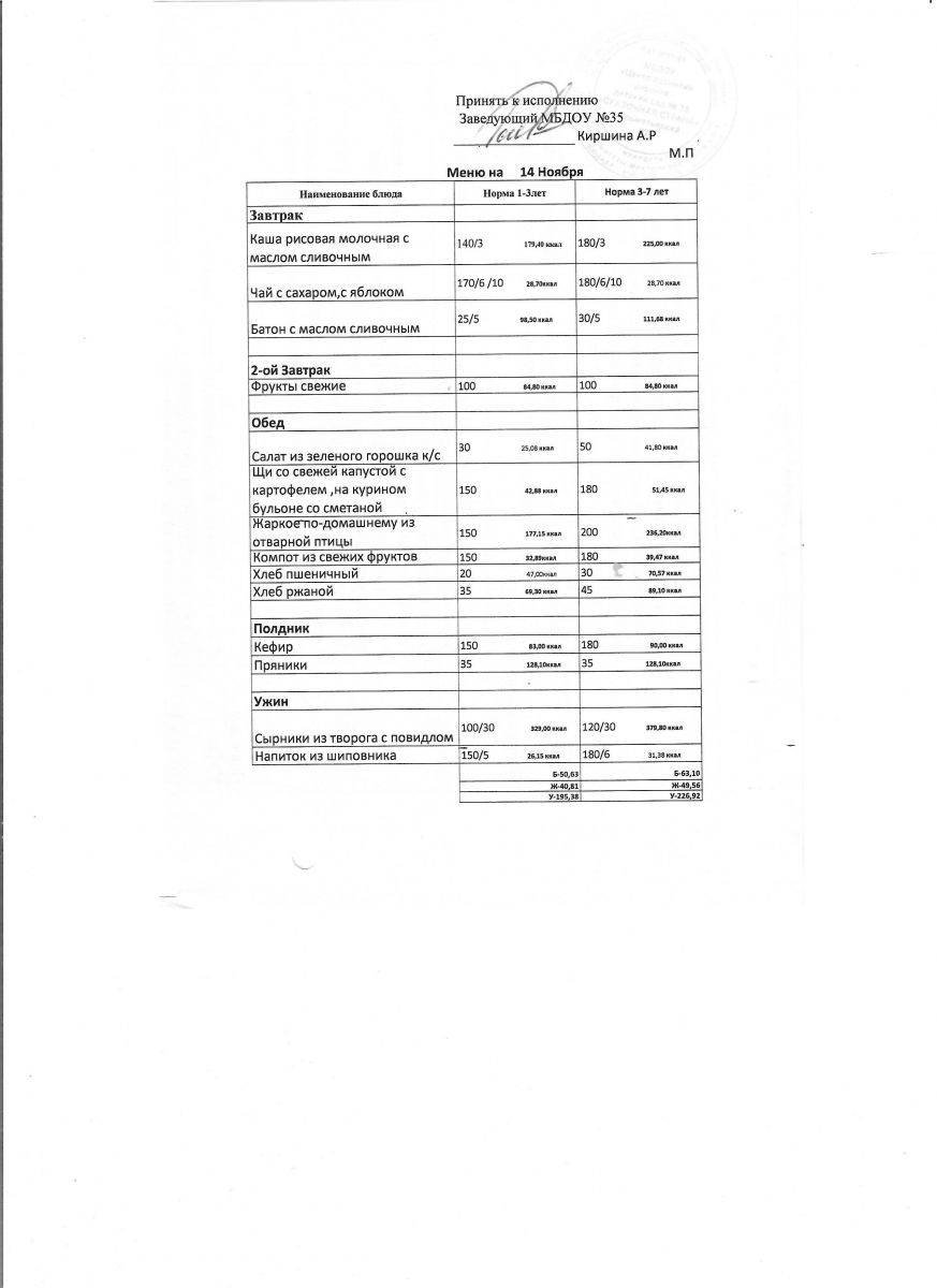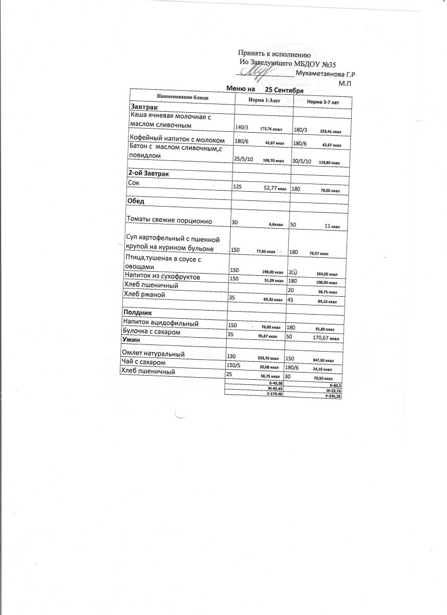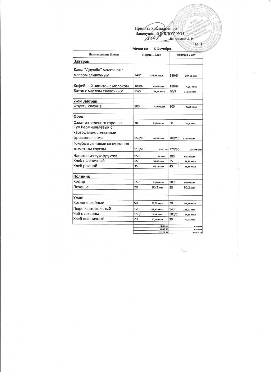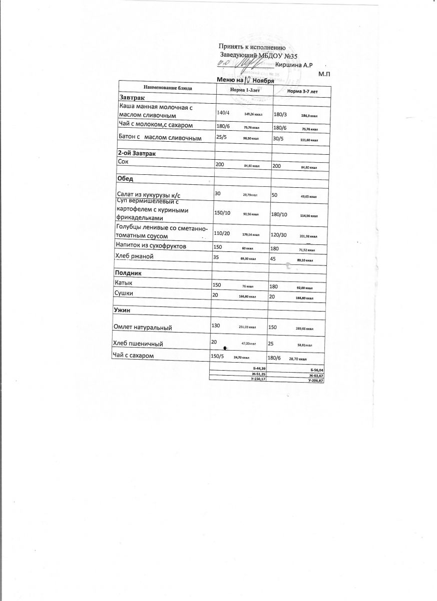 Диетическое питание в МБДОУ "ЦРР-д/с №35 "Сказочная страна" отсутствует