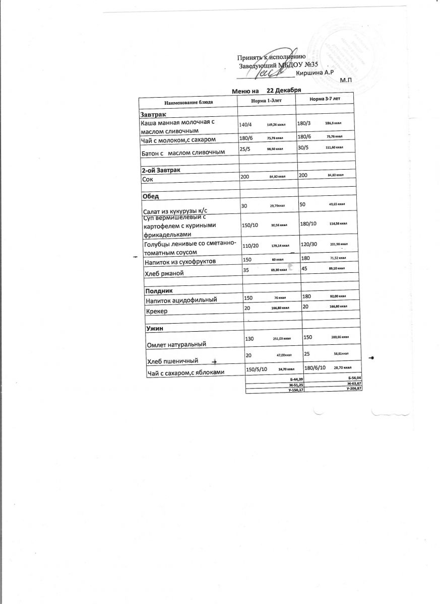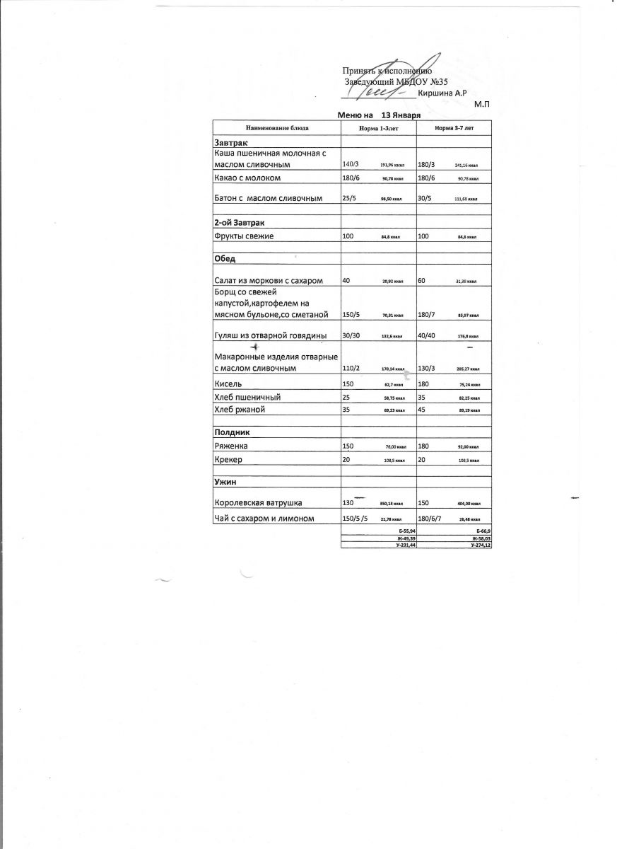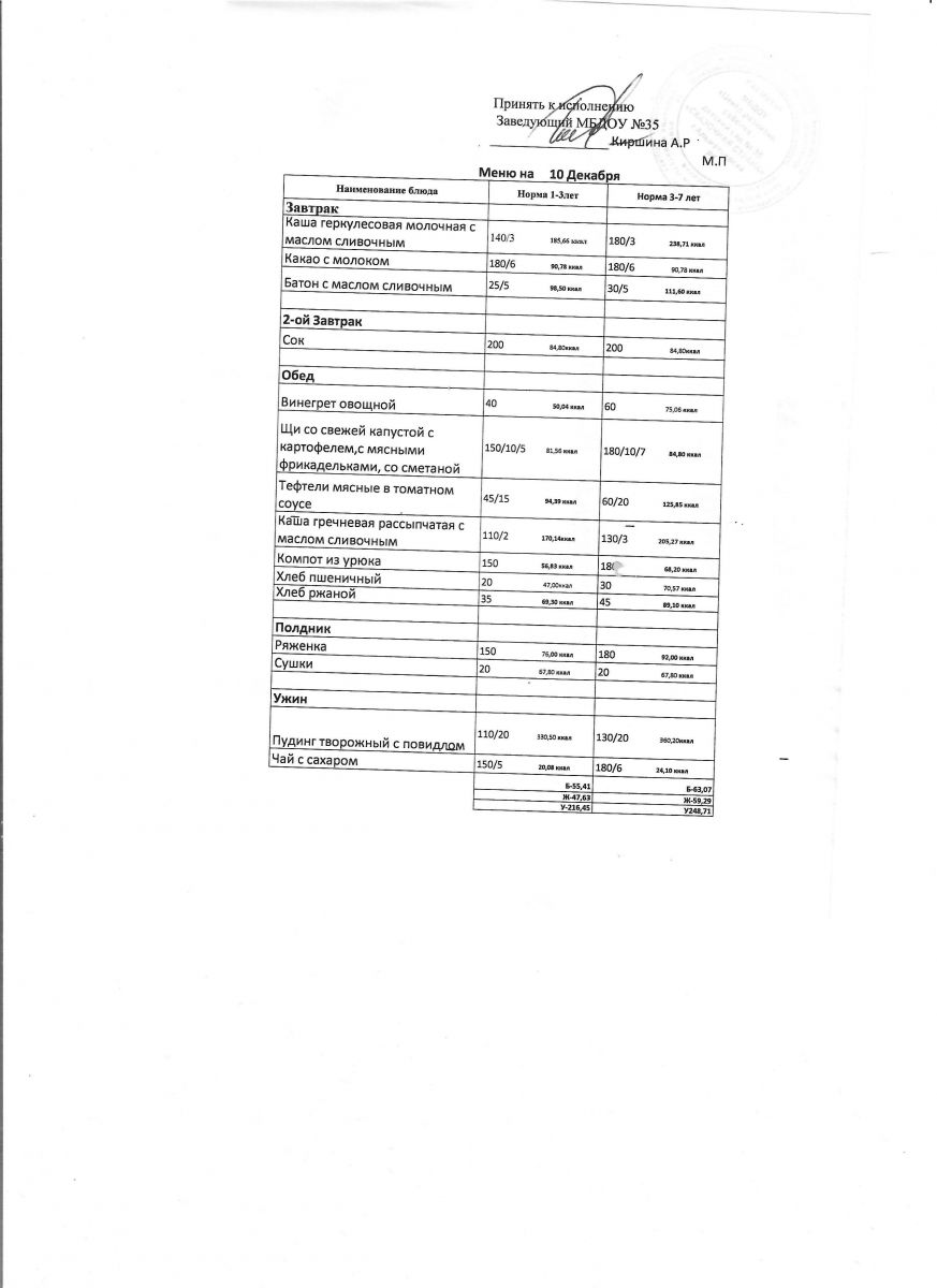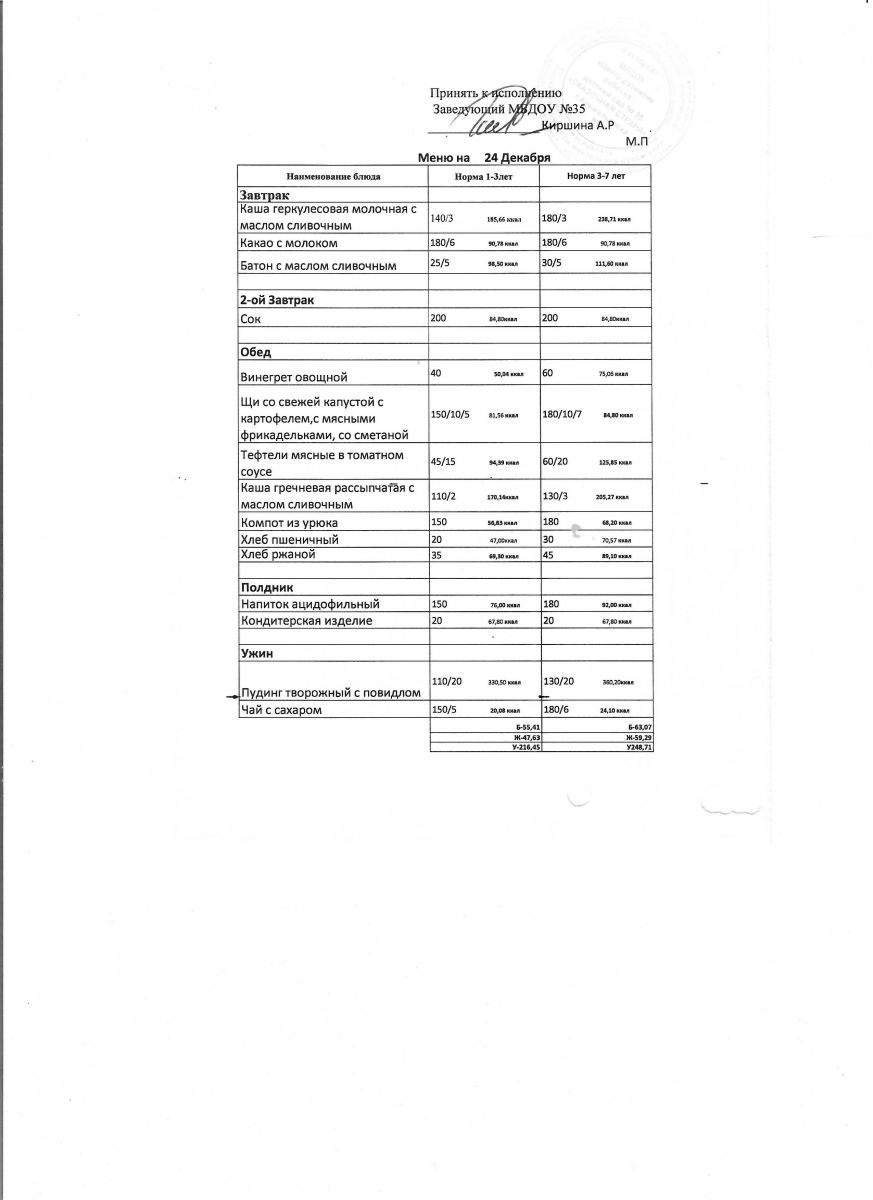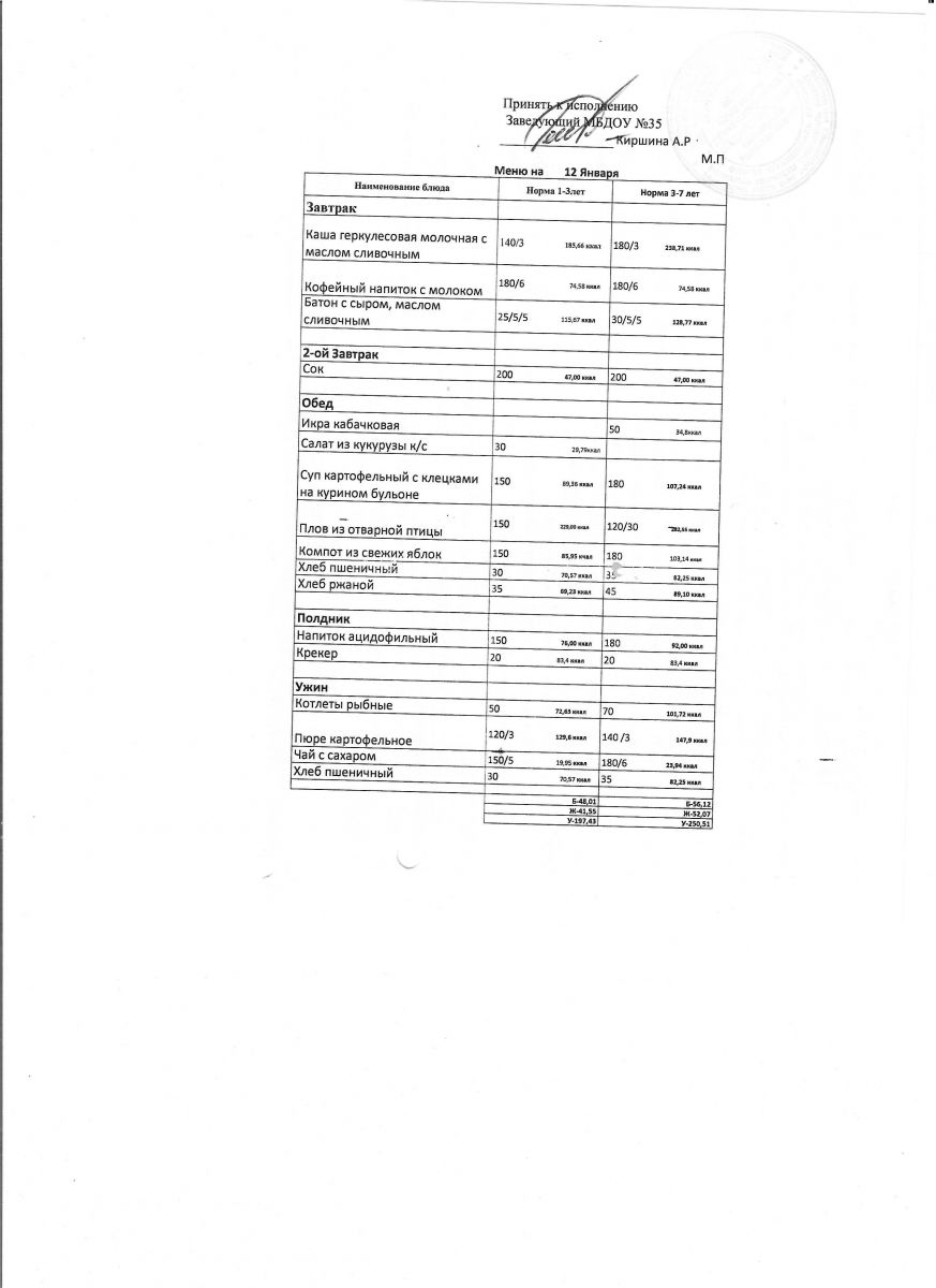 Диетическое питание в МБДОУ "ЦРР-д/с №35 "Сказочная страна" отсутствует