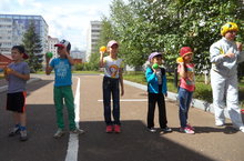 27 июня 2014 года в детском саду прошло спортивно-музыкальное развлечение «Королевство волшебных мячей» для детей подготовительной к школе группы « Пчёлка» . Цель данного мероприятия - вызвать у детей потребность в движении, развитие ловкости, внимания, находчивости, быстроты реакции, а также вызвать интерес к играм и упражнениям с мячом, воспитывать организованность, самостоятельность в двигательной деятельности. В гости к детям пришёл главный герой - «Весёлый мяч». Он проводил подвижные игры,а во время пения песни дети повторяли за мячиком различные упражнения. Интерес детей поддерживался тем, что в каждой игре использовались мячи разного размера и цвета. Красочное мероприятие украшала музыка и цветной инвентарь. Дети в очередной раз закрепили навыки в бросании, катании и ловли мяча, получили много позитивных эмоций.