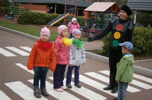 В рамках проведения месячника по профилактике детского дорожно-транспортного травматизма в старших группах прошли игры-беседы "Наш друг - светофор".