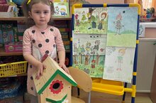 В детском саду прошла акция «Помоги пернатым». Дети делали на занятиях коллективные работы, рисовали деревья и клеили для птиц домики. А дома, вместе с папами изготовили настоящие скворечники и повесили их на нашем участке!