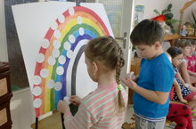 Началась неделя психологии. Сегодня 29.01.18 в группах проводилась акция «Радуга настроения». Цель этой акции: проследить динамику изменения настроения в течение дня. Дети и взрослые с большим удовольствием принимали участие. В приемной групп были нарисованы плакаты с изображением радуги – «Радуга настроения». Воспитатели утром и вечером предлагали детям жетончики с их именами. А дети, заглянув в себя и оценив какое у них настроение, прикрепляли жетончик на цветную полоску радуги. В старшей группе №47 «Пчелка» педагог-психолог провела релаксационное занятие «Необычная радуга». Под спокойную расслабляющую музыку ребята фантазировали и представляли необычную радугу, взяв с собой все приятные ощущения на целый день. В подготовительной группе №33 «Детство» педагог психолог провела диагностическое занятие «Волшебная страна чувств», на котором ребята помогли жителям волшебной страны раскрасить домики и карту страны.