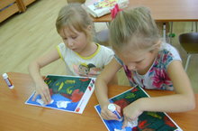 Методика Светланы Погодиной очень интересна и увлекательна, она позволяет развивать творческие способности ребенка с самого раннего детства.Воспитатели группы «Солнышко» Зеленцова Л.А. и Костромина М.А. часто используют с детьми на занятиях по рисованию эту методику. Дети с удовольствием дорисовывают незаконченный рисунок (основа для творчества) с использованием нетрадиционных техник рисования, используя в изобразительной деятельности пластилин, салфетки, ватные палочки, ватные диски и т.д. В процессе создания образа картины у детей уточняются, углубляются, закрепляются знания и представления, которые являются своеобразным материалом для развития мышления, воображения.