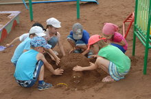 "Песочные фантазии" - под таким названием проходят весёлые денёчки в нашем детском саду. Ребята создают интересные композиции из песка и воды, украшают их, играют и веселятся.