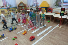 В группе "Малыш" дети с большим интересом играют, изучая правила безопасного поведения на дорогах, вместе со своими воспитателями Закировой Р.М. и Игнатовой Н.С., привлекая к этой работе и родителей.