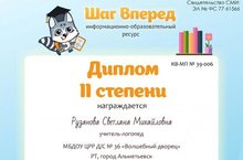 Диплом II степени получила учитель - логопед Рузанова Свктлана Михайловна за работу "Играем пальчиками и развиваем речь2 за победу в международном конкурсе "Моя лучшая презентация". Поздравляем! Молодец!