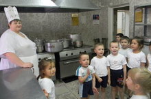 С 20 октября воспитатель Гиниятова Г.Ф. начала знакомить детей с циклом бесед «Где и кем работает огонь? » и дошколята познакомились с профессией повара, одной из профессий тесно связанных с огнём. Беседа была подкреплена тематической экскурсией на кухню д/сада, где ребята воочию увидели кухонное оборудование с современными электроплитами, а также поздравили работников кухни с профессиональным праздником Днём Повара, подарили небольшой сувенир, изготовленный своими руками, спели песню на английском языке «My vegetable soup» («Мой овощной суп») и поблагодарили поваров за их благородный труд. Родители воспитанников также не остались в стороне и были вовлечены в дизайн-проект «Красивый светильник», в ходе которого им предложено совместно со своими детьми разработать и изготовить модель светильника, торшера или настольной лампы из бросовых материалов.