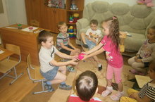 Балаларны татар теленә өйрәтүче тәрбиячеләр Усманова Р.М. һәм Мурдагулова В.Р. төрле уеннар ярдәмендә балаларны татар теленә өйрәтәләр. Балалар кызыклы уеннар барышында татар телендә бик теләп аралашалар.
