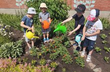 Летом на территории нашего детского сада растет очень много цветов! Во время прогулок воспитанники совместно с воспитателем собирают сорную траву, сухие цветоносы, рыхлят землю, поливают цветы. Одновременно цветы становятся объектом для наблюдения. Дети рассматривают окраску, форму лепестков, закрепляют цвета. Благодаря общению с миром природы у ребят формируются положительные моральные качества, воспитывается любовь к природе, чувство ответсвенности за окружающую среду, желание заботиться о растениях, умение видеть и чуствовать её красоту.