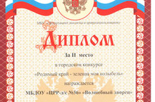 Поздравляем детей и педагогов, принявших участие в городском конкурсе «Родимый край – зелёная моя колыбель», организованном МБУ «Департамент экологии и природоиспользования», с дипломом за II место. Благодарим всех! Молодцы!