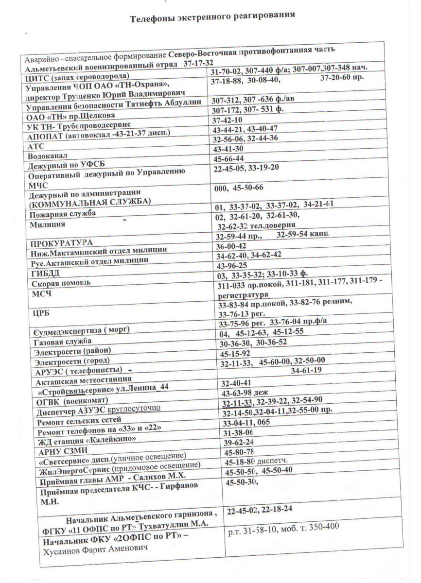 Телефоны экстренного реагирования