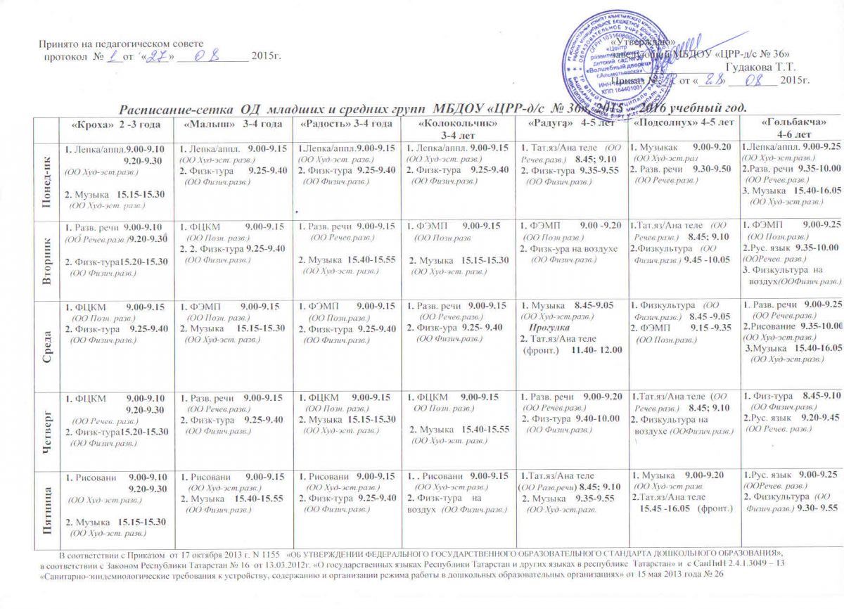 Режимы дня на холодный период 2015-2016 учебный год (продолжение)