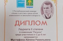 Поздравляем! Нашу воспитанницу Мустафину Айлину Рамильевну, она участвовала I Республиканском конкурсе "Алиш и детство"среди детей дошкольного и школьного возраста.
