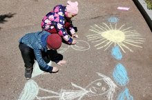 Рисование на асфальте цветными мелками. Это очень увлекательное занятие для прогулки. А ещё это познание детьми окружающего мира. Рисование мелом на асфальте развивает воображение, внимание, мышление, моторику, а самое главное создаёт хорошее настроение и радость от собственных рисунков.