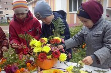 Осенняя пора очей очарованье….Осень радует нас не только богатым урожаем овощей, но и ярким цветением осенних клумб. В детском саду № 37 «Сказка» прошел конкурс на лучшую флористическую композицию. Главным и единственным условием конкурса – использование в композиции, только выращенные своими руками элементы композиции. С увлечением дети принялись за работу. Первыми были срезаны с клумбы цинии, астры, хризантемы, розы и даже бархатцы, но юные флористы вспомнили о недавно собранном урожае овощей и конечно нашли им применение. Посмотрите, какие фантастически красивые букеты были составлены нашими воспитанниками.