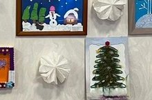Новогодние и зимние сюжеты семейного творчества украсили музыкальный зал детского сада и внесли неповторимый элемент в новогодний интерьер.
