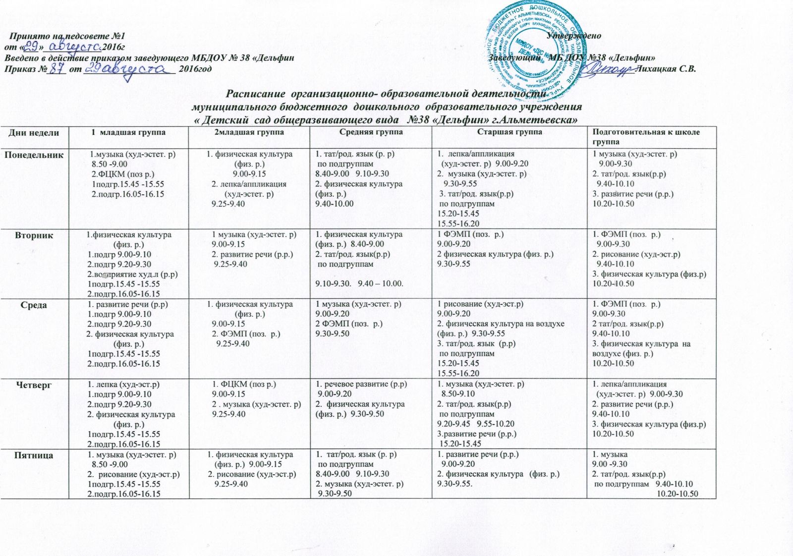 Расписание организационно-образовательной деятельности на 2016-2017 учебный год