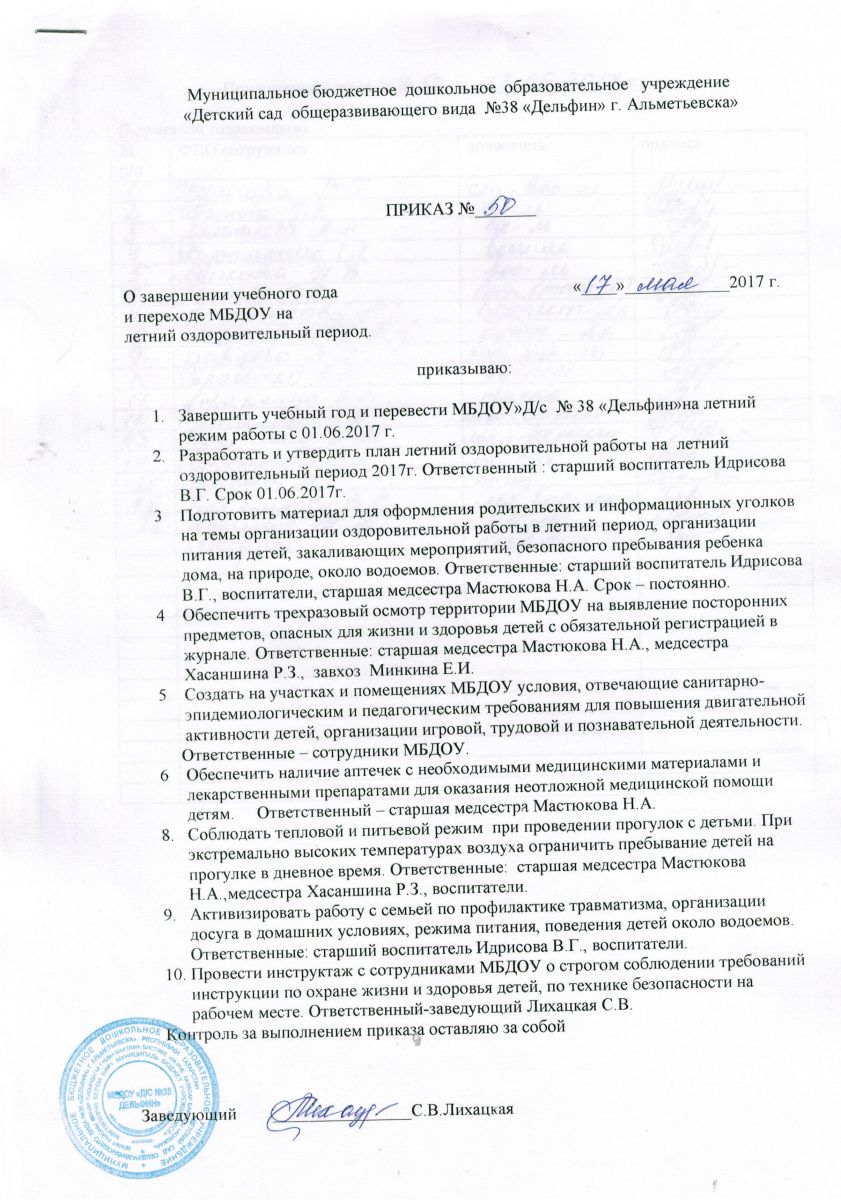 Приказ на летний оздоровительный период на 2016-2017 учебный год