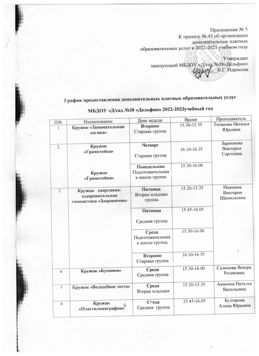 График кружков на 2022-2023учебный год