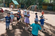 На прогулке дети средних и старших групп познакомились с мордовскими народными подвижными играми: "Ветер-ветерки" ("Варма-варминеть"); "Поймай мяч" ("Кундык осканть"); "Горшочек" ("Чакшкинесэ")