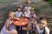 С целью приобщения к истокам русской народной культуры воспитатель Садреева Е.В. детей старшей группы № 3 познакоммили с историей праздника, с традциями и забавами наших предков. После девочки "сплели себе венки" и водили хоровод.