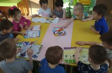Дети старшей группы "Домовята" с интересом рассматривают журналы "Салават күпере", "Сабантуй". Воспитатель по обучению детей татарскому языку Сайфуллина А. Г. познакомила детей с содержанием журналов.