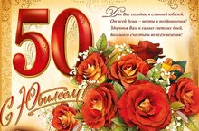 Поздравляем Вас с 50 летним Юбилеем! Желаем Вам душевных сил, доброго здоровья, большой радости, успехов! Семье Вашей благополучия и тепла!