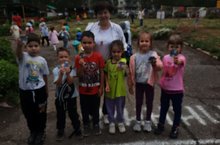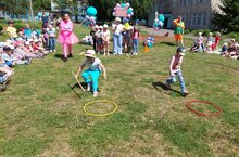 Радостно, звонко и красочно прошёл главный праздник детства – День защиты детей в нашем детском саду. Площадка детского сада была украшена воздушными шарами, звучала весёлая музыка, поднимая настроение у детей. В гости к воспитанникам пришли Игрулька, Смешинка и Баба Яга. Ребята участвовали в играх, эстафетах, танцах. Праздник продолжился рисованием на асфальте цветными мелками. В детских рисунках можно было увидеть природу, друзей, родных и близких людей. Все рисунки были разными, но объедены одной общей темой «Счастливое детство». Дети получили море впечатлений, зарядились хорошим настроением на весь день. -