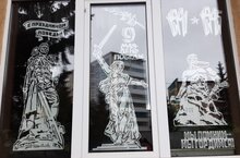 К участию в конкурсе все подошли творчески, оформляя окна теми символами, которые у участников ассоциировались с празднованием Дня Победы. Символы, наносились на окна, с помощью красок, трафаретов из бумаги - это зависело от фантазии участников.