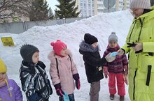 Цель акции: проявить внимание и заботу о людях, напомнить об осторожности в гололед. Воспитанники группы "Клубничка" раздали буклеты родителям, расставили на территории сада ай-стопперы «Осторожно, гололед» и провели беседы.