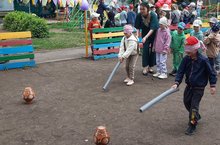 В детском саду прошел традиционный праздник «Сабантуй». Ребята соревновались в силе, ловкости и выносливости, поиграли в игры соревновательного характера: «Бой подушками», «Конные скачки», «Кто быстрей донесёт воду», «Перетяни канат». Особенно весело прошел бой подушками.Самым сложным для ребят, оказалось, попасть по горшку с закрытыми глазами, но и с этим испытанием они справились!