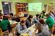 11 октября педагоги ДОУ: Козлова Л.Н., Ахметгалеева Г.И., Бажутова А.Н., Тихонова Т.Г., Мустафина Р.Р. приняли участие в шашечном турнире, который проходил на базе МБДОУ "ЦРР -д/с №57 "Соловушка". Победителями игры стали: Козлова Л.Н. -1 место, Тихонова Т.Г., Бажутова А.Н. - 3 место. Поздравляем наших победителей!